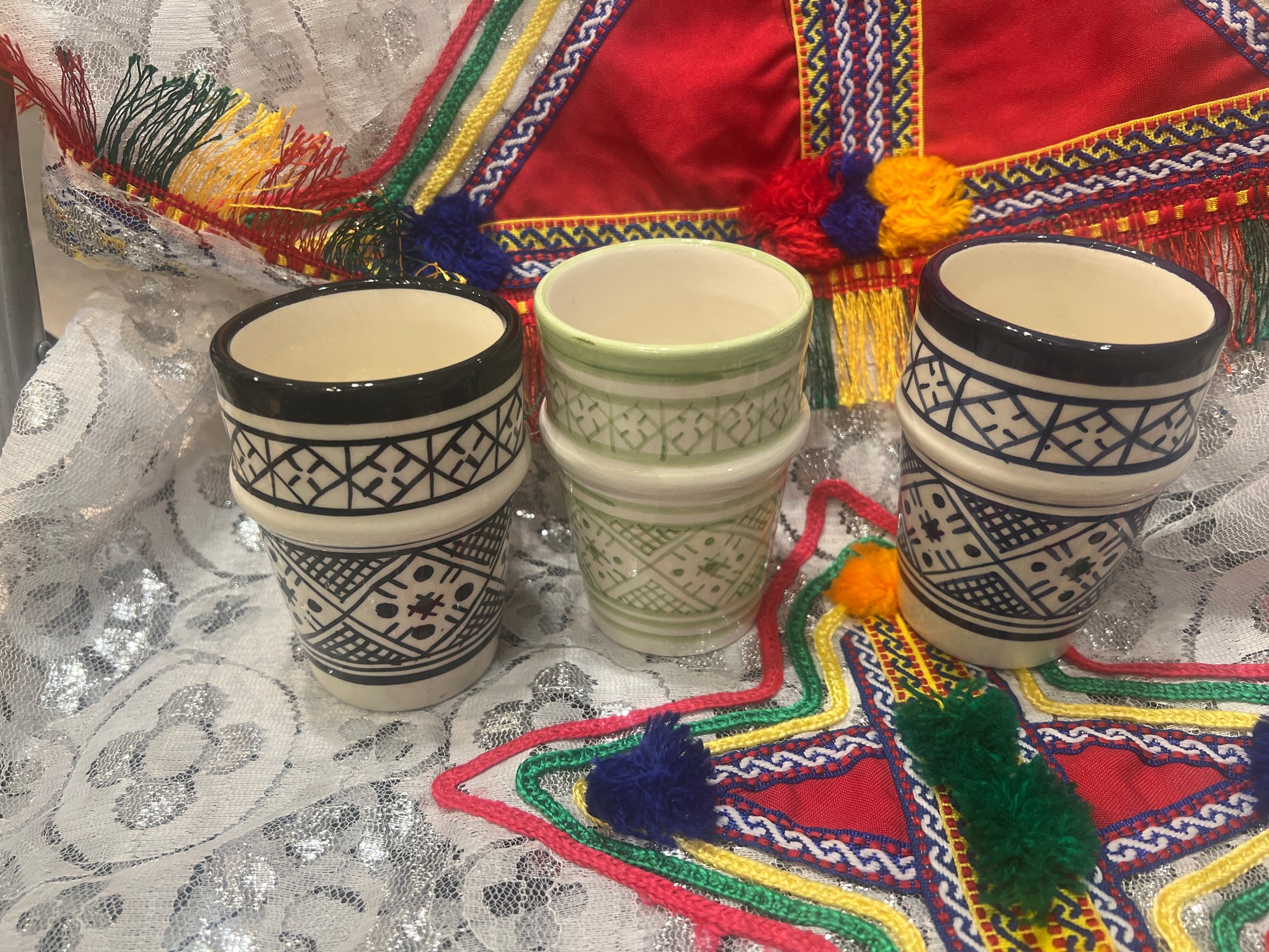 Découvrez l'art de donner avec nos verres en céramique faits à la main, peints à la main avec des détails d'Asfi. Parfait pour les boissons chaudes et froides ou comme objet de décoration, chaque verre est fabriqué de manière unique.